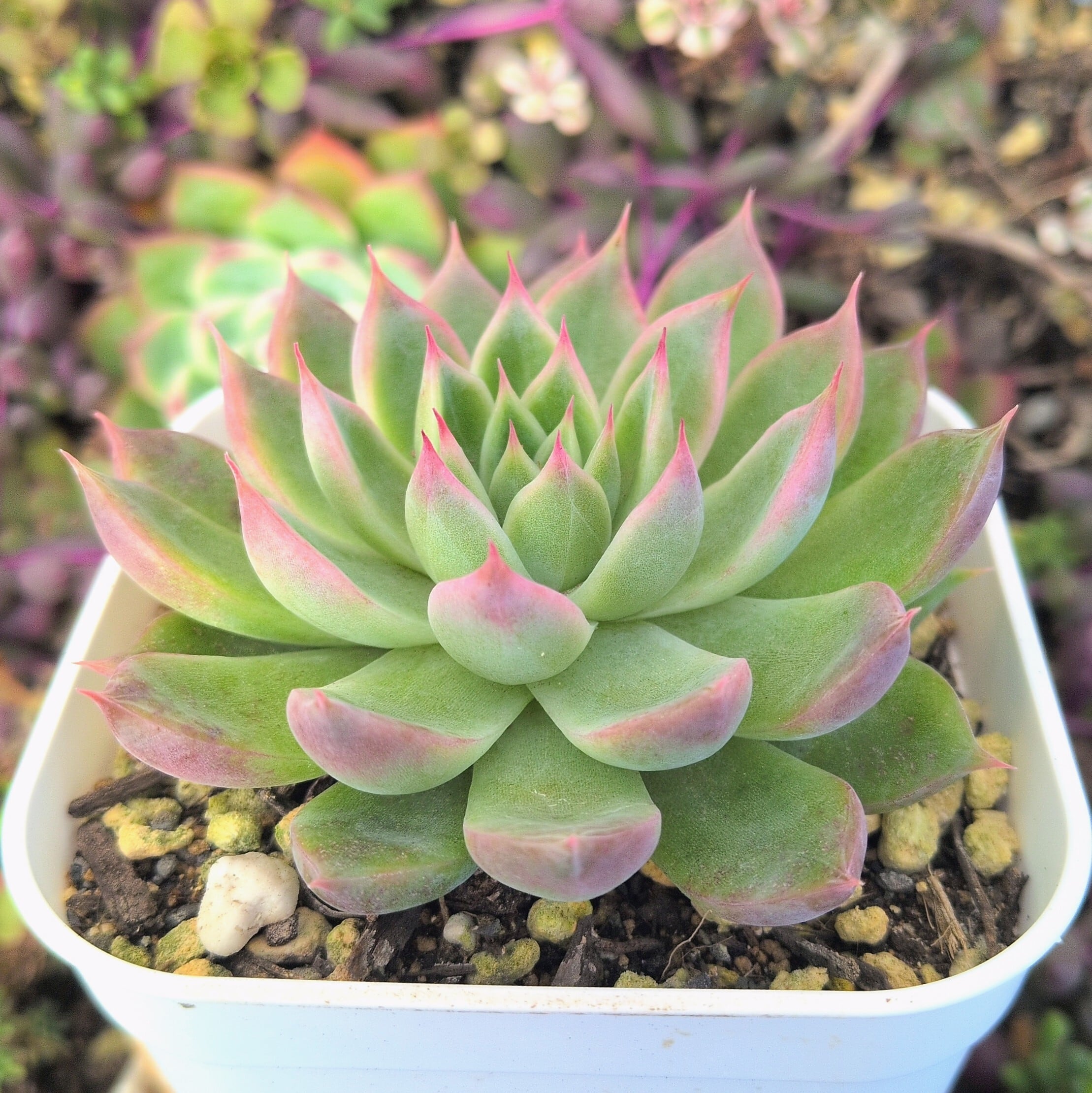 ヒラヒラの葉が可愛いシムランスを交配したらシュッとした葉が内側にカールして色付く可愛いエケベリアになりました。
