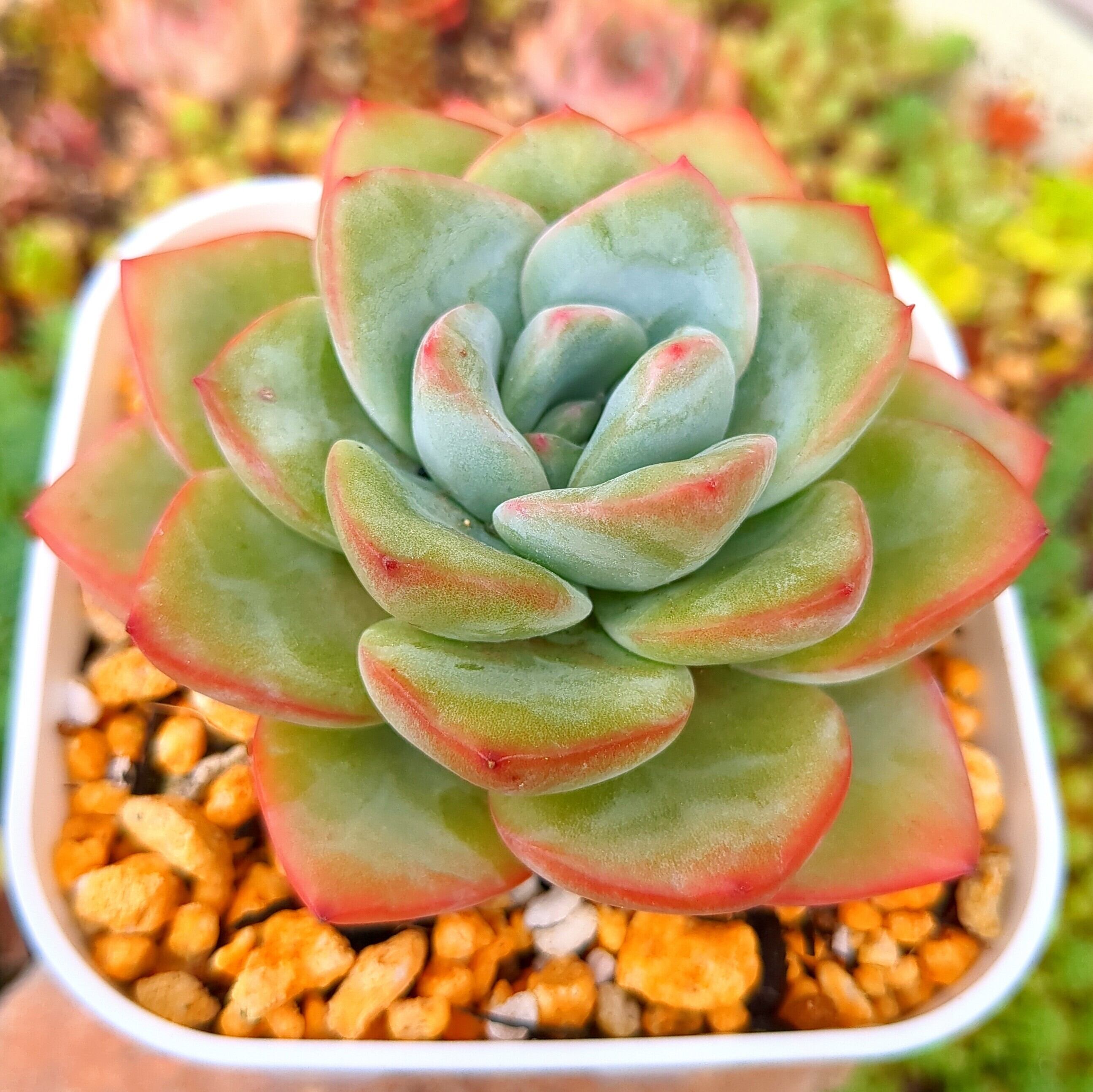 ぷっくりとしたライトグリーンの葉をもち、紅葉時に葉のエッジがピンクに色付きます。